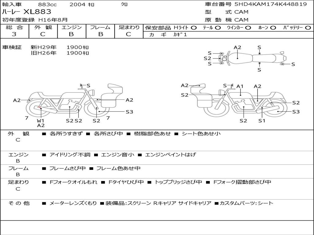 | Номер рамы / VIN | 5HD4CAM174K448819 |