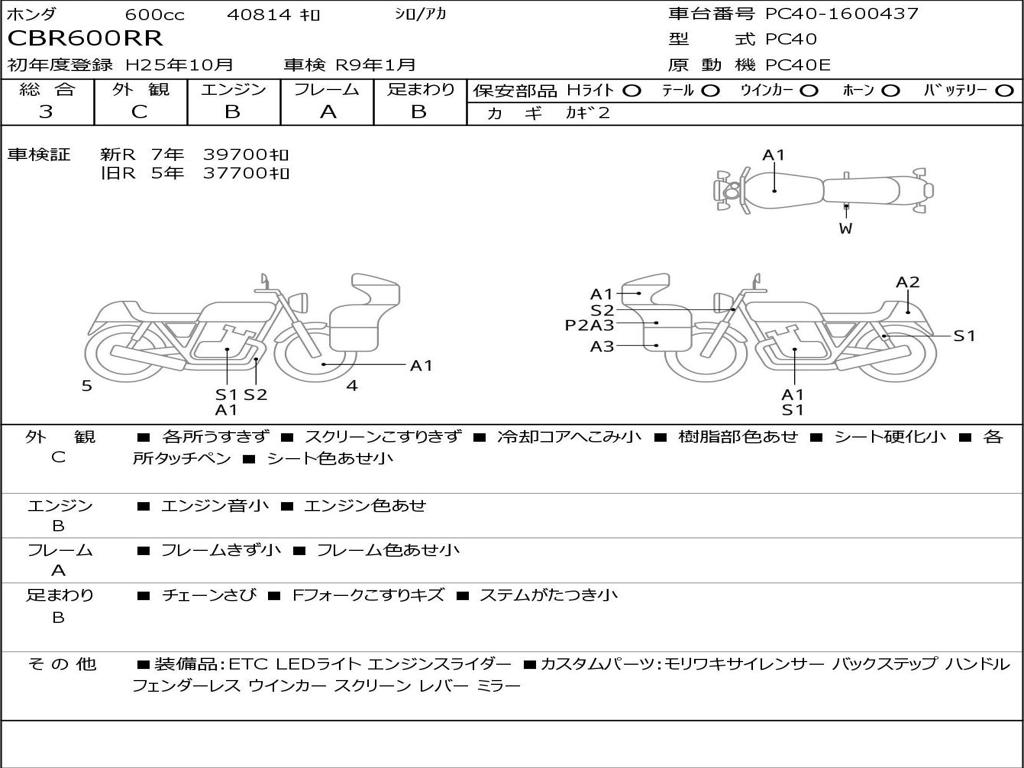 | Номер рамы / VIN | PC40-1600437 |