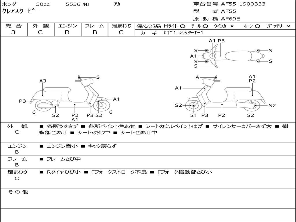 | Номер рамы / VIN | AF55-1900333 |