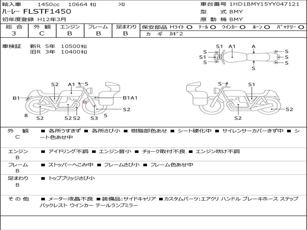 | Номер рамы / VIN | 1HD1BMY15YY047121 |