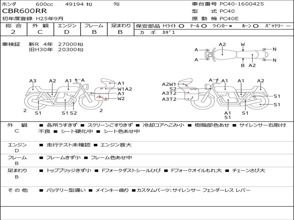 | Номер рамы / VIN | PC40-1600425 |
