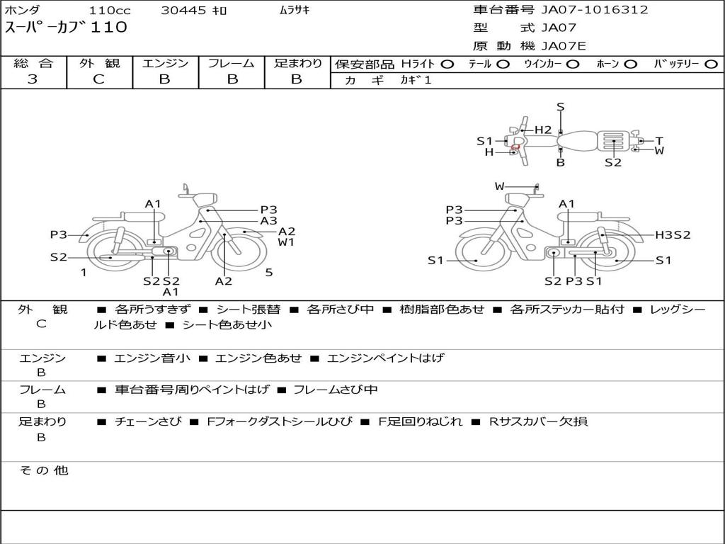 | Номер рамы / VIN | JA07-1016312 |