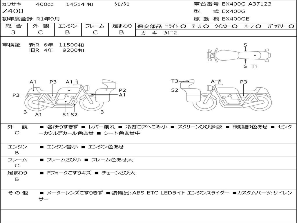 | Номер рамы / VIN | EX400G-A37123 |