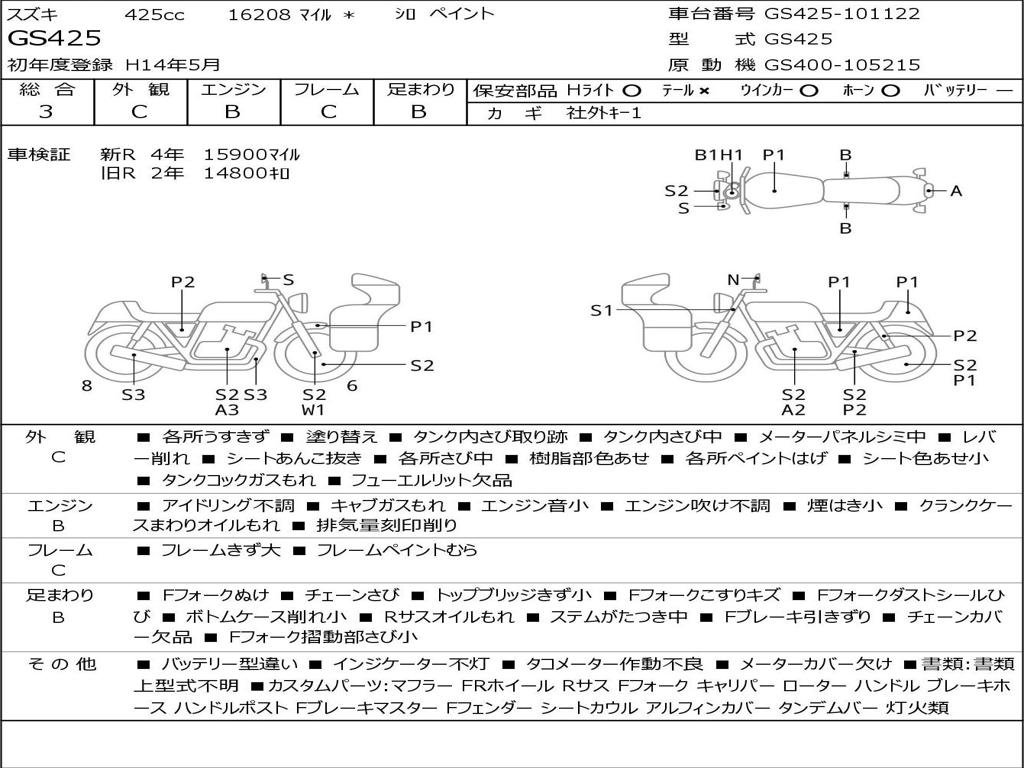 | Номер рамы / VIN | GS425-101122 |
