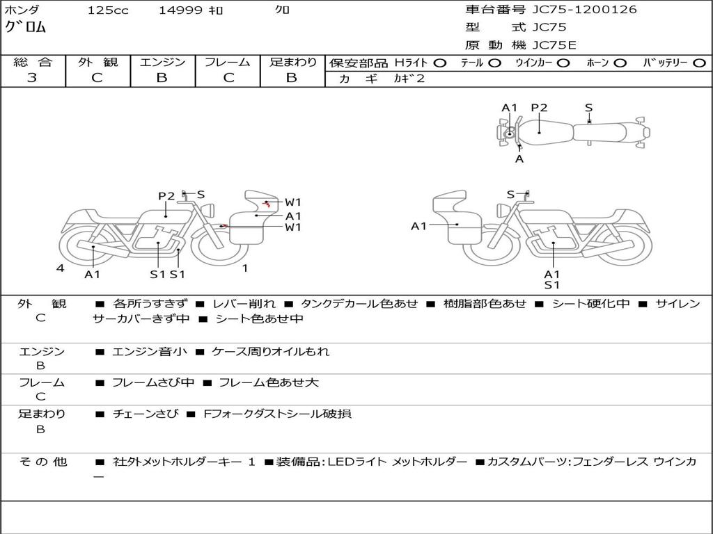 | Номер рамы / VIN | JC75-1200126 |