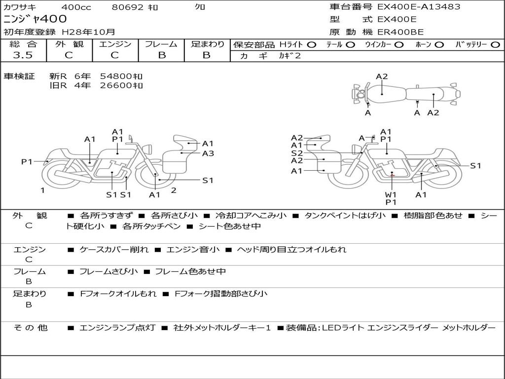| Номер рамы / VIN | EX400E-A13483 |