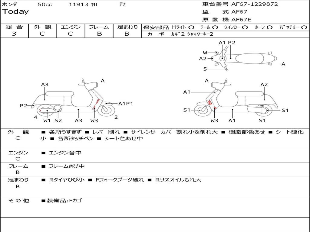 | Номер рамы / VIN | AF67-1229872 |