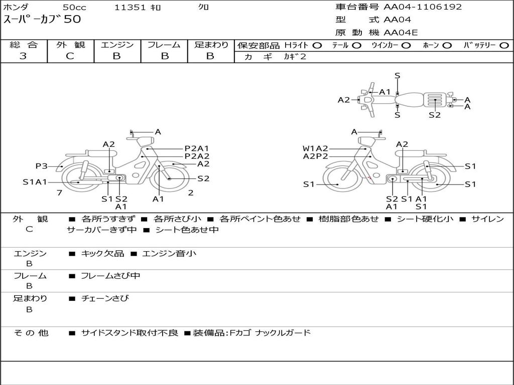 | Номер рамы / VIN | AA04-1106192 |