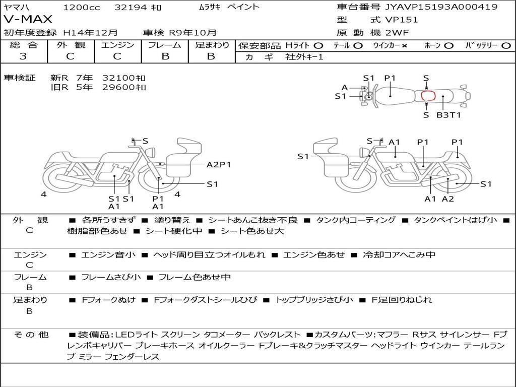 | Номер рамы / VIN | JYAVP15193A000419 |