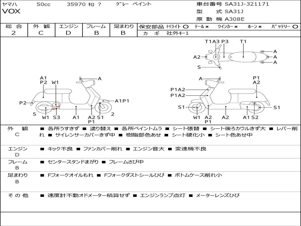 | Номер рамы / VIN | SA31J-321171 |
