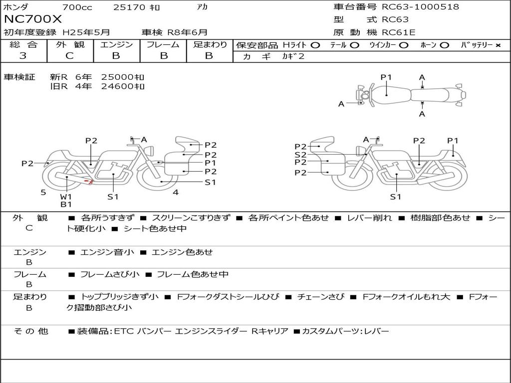 | Номер рамы / VIN | RC63-1000518 |
