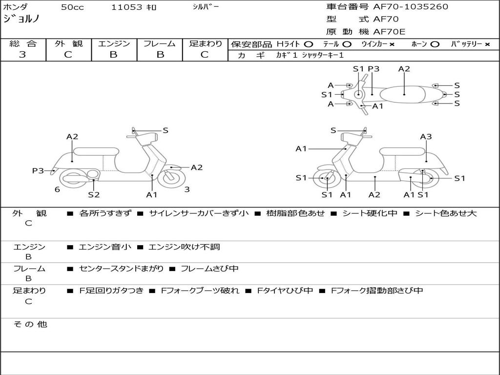 | Номер рамы / VIN | AF70-1035260 |