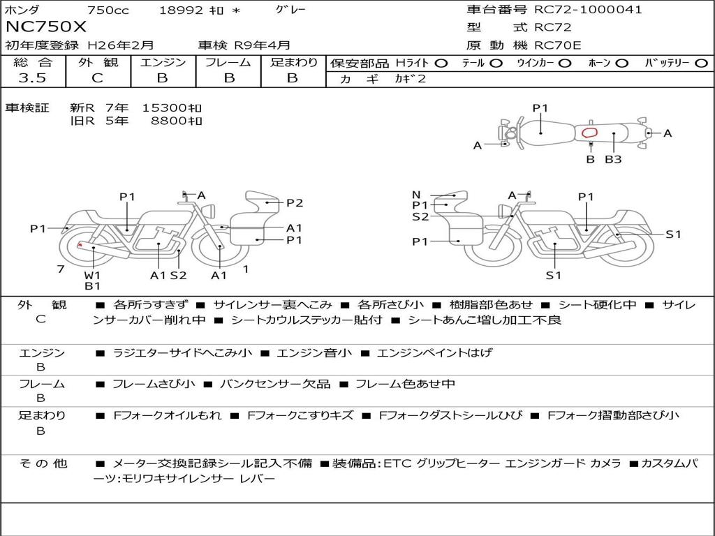 | Номер рамы / VIN | RC72-1000041 |