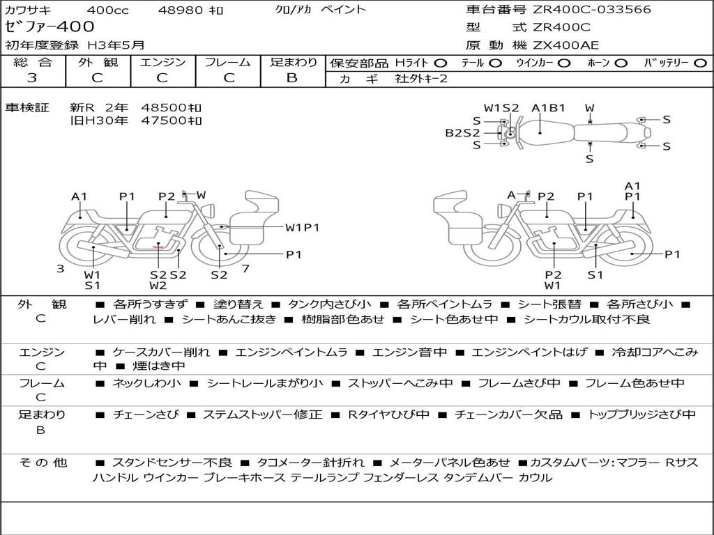 | Номер рамы / VIN | ZR400C-033566 |
