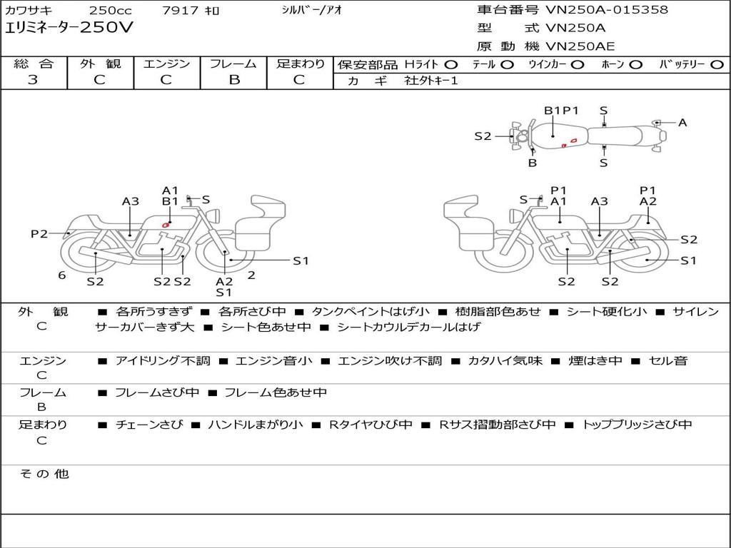 | Номер рамы / VIN | VN250A-015358 |