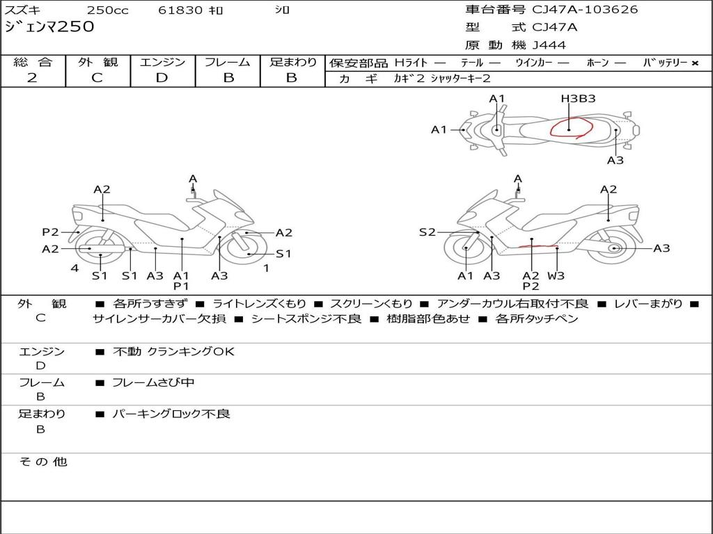 | Номер рамы / VIN | CJ47A-103626 |