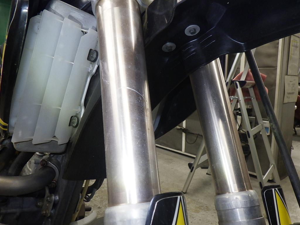 | внешняя часть вилки | царапины <много>, следы коррозии <много>, потек масла <много>, выцветание краски |