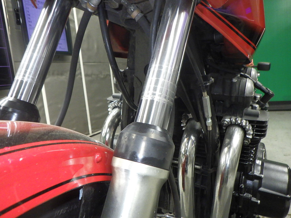| внешняя часть вилки | царапины <много>, следы коррозии, потек масла |