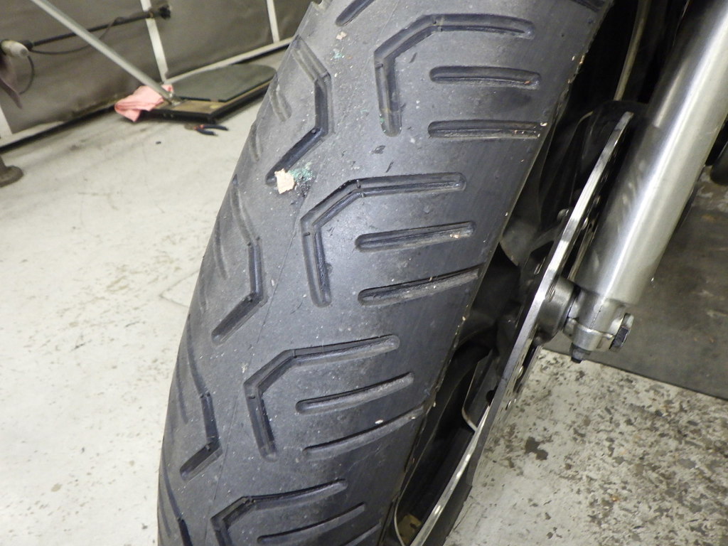 | шина | трещины, требует замены |