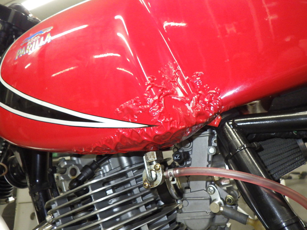 | бензобак | износ(потертость) краски <много>, вздутие <много>, дырка |