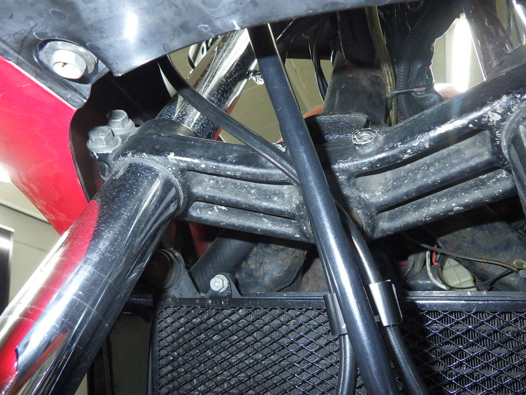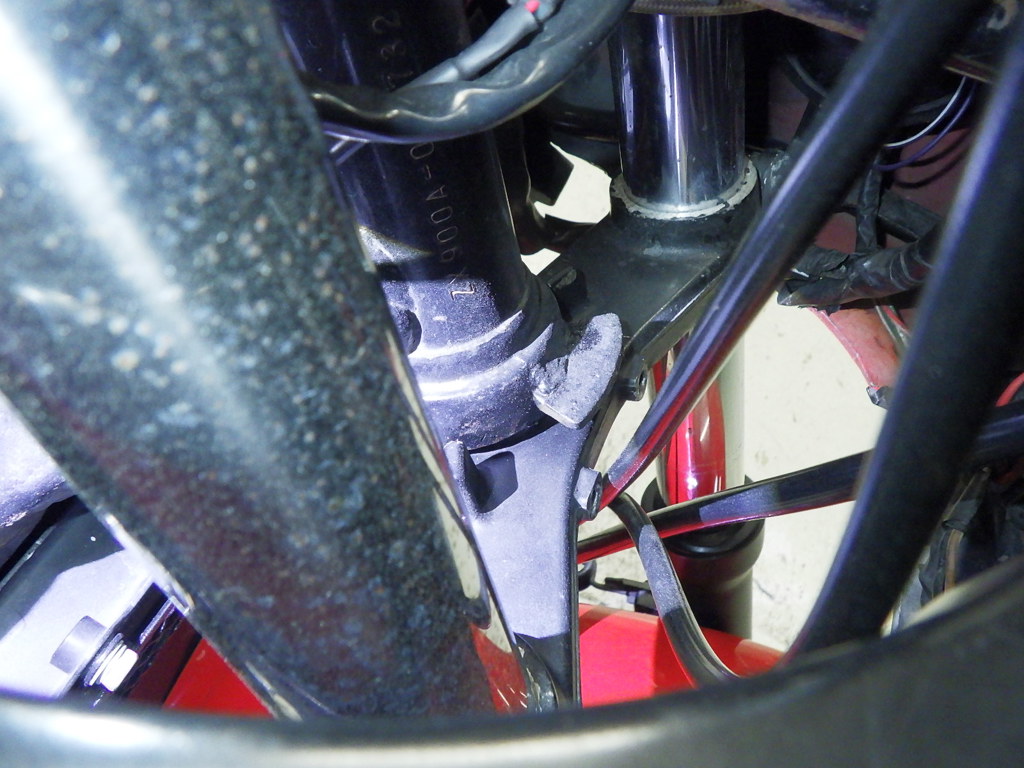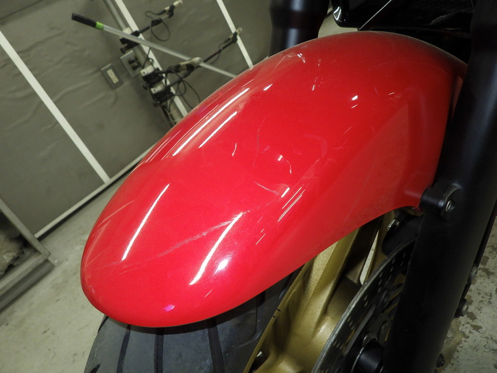 | внешняя часть вилки | потек масла <немного>, перекрашено |