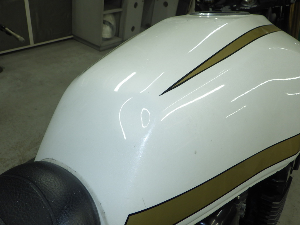| бензобак | царапины <много>, вмятина <много>, следы коррозии, частичная подкраска, неисправность, дырка, исправлен., неисправность |
