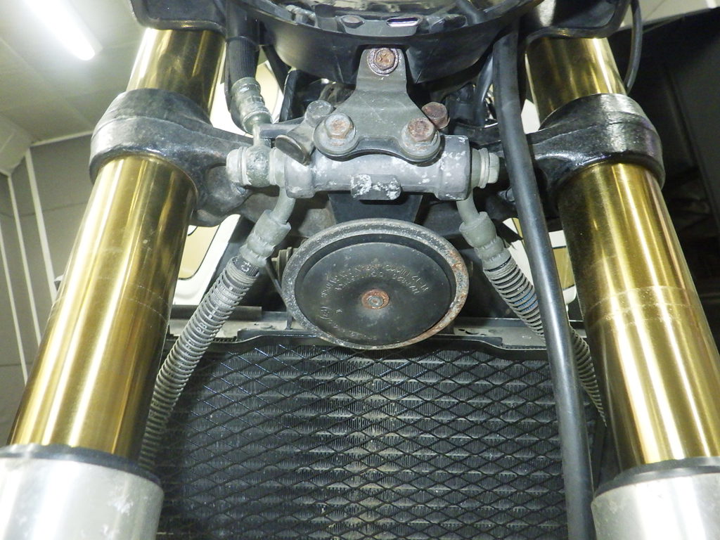 | внешняя часть вилки | следы коррозии <много>, царапины <много>, потек масла <много>, слабый |