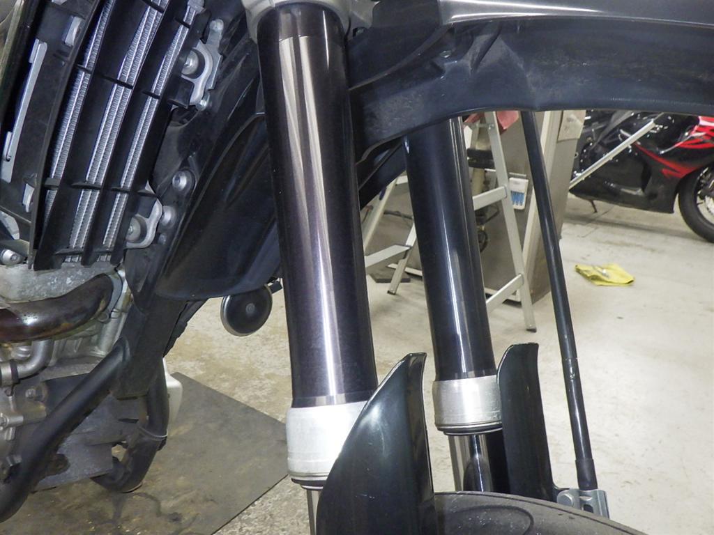 | внешняя часть вилки | следы коррозии, потек масла <много>, выцветание краски |