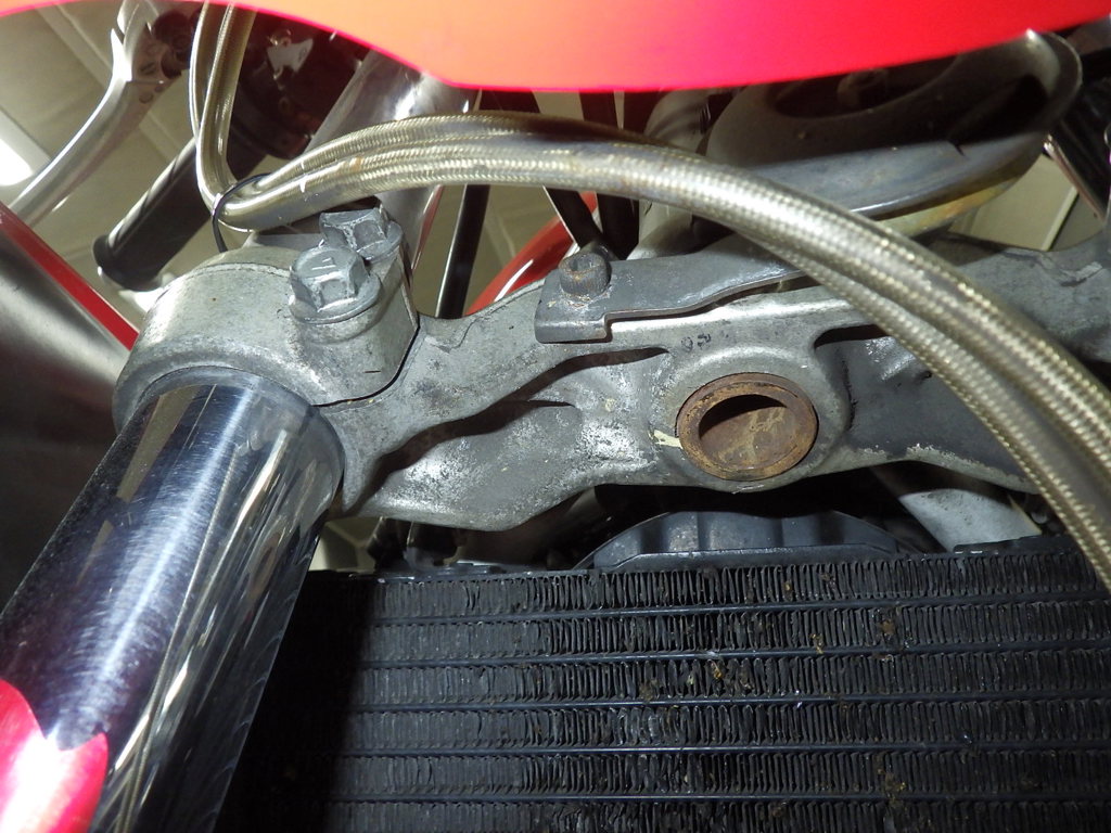 | внешняя часть вилки | царапины, следы коррозии <много>, потек масла |