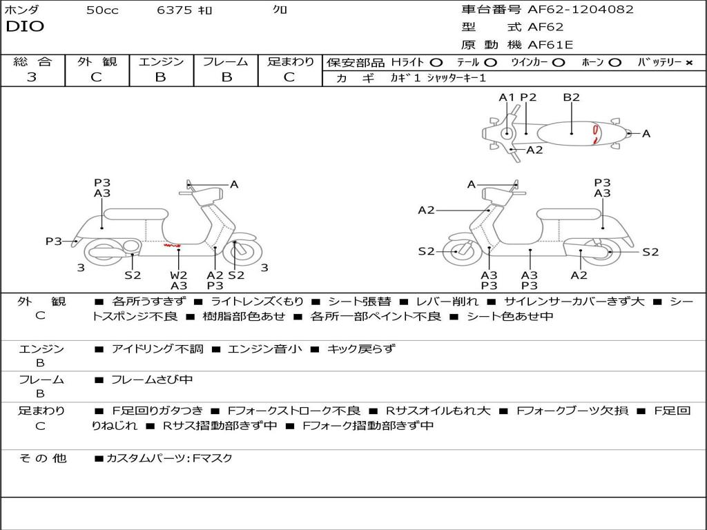 | Номер рамы / VIN | AF62-1204082 |