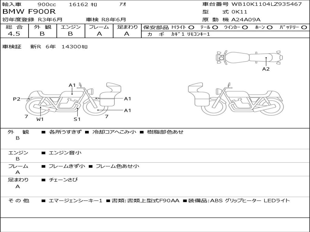 | Номер рамы / VIN | WB10K1104LZ935467 |