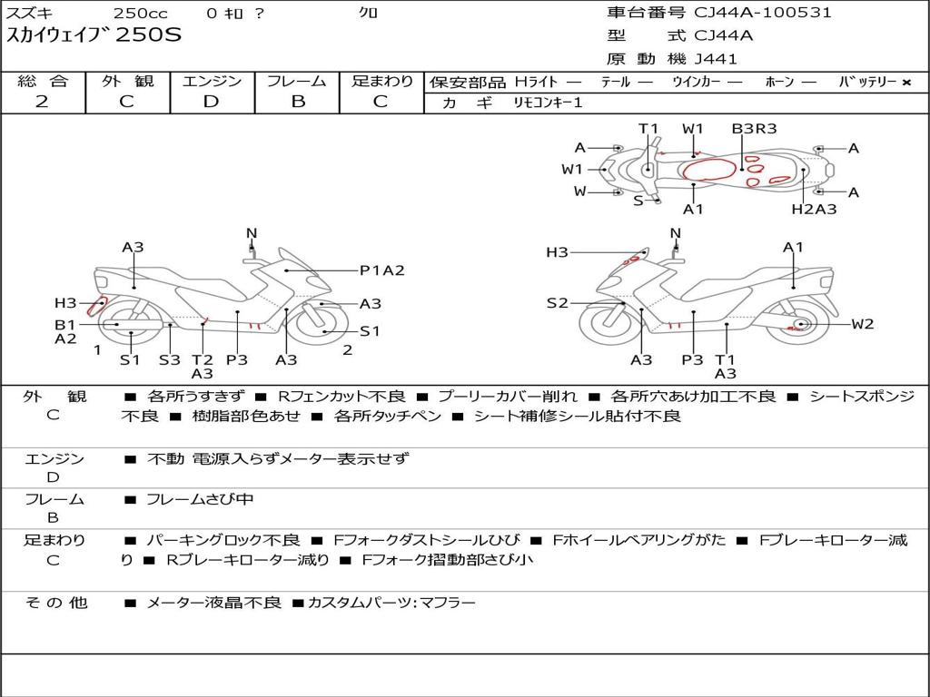 | Номер рамы / VIN | CJ44A-100531 |