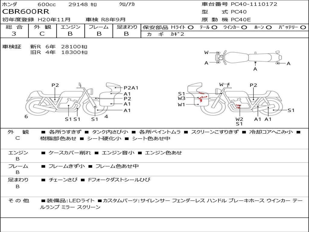 | Номер рамы / VIN | PC40-1110172 |