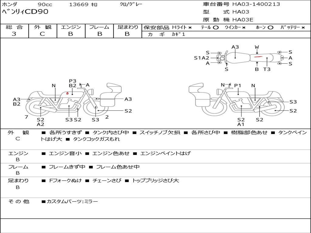 | Номер рамы / VIN | HA03-1400213 |