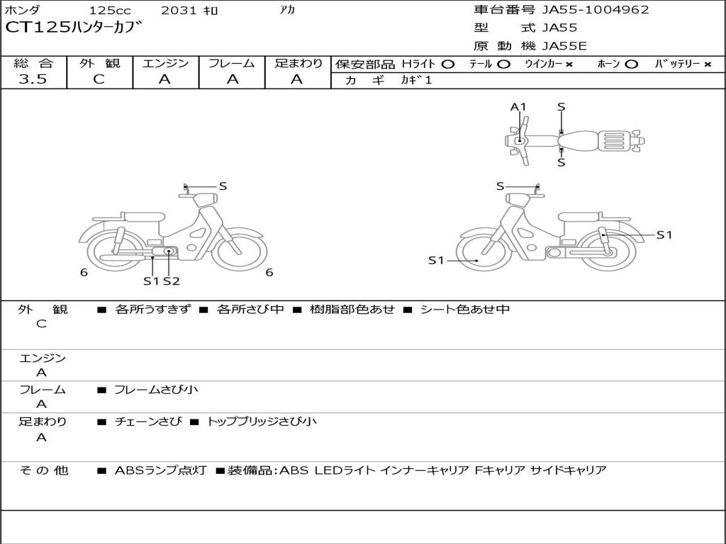 | Номер рамы / VIN | JA55-1004962 |