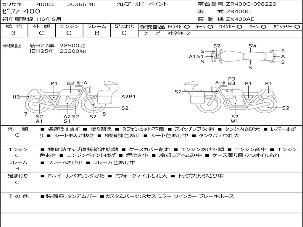 | Номер рамы / VIN | ZR400C-098229 |