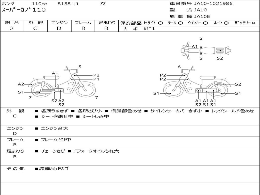 | Номер рамы / VIN | JA10-1021986 |