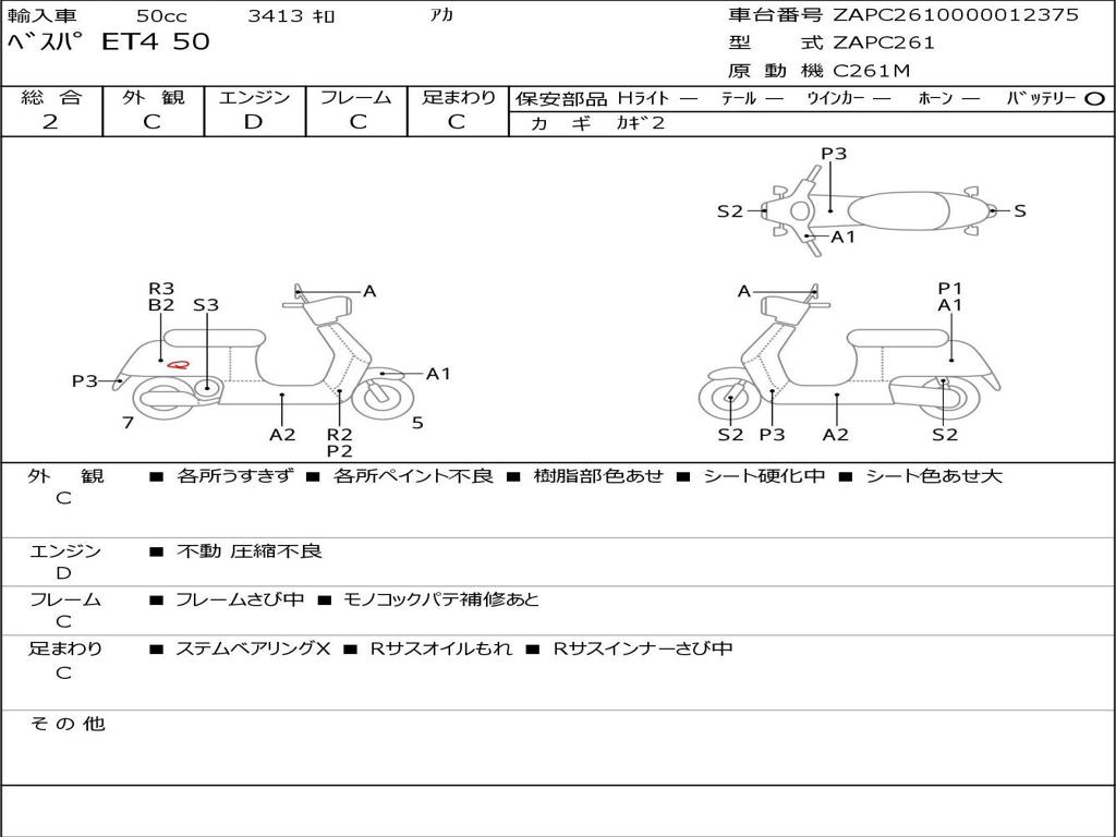 | Номер рамы / VIN | ZAPC2610000012375 |