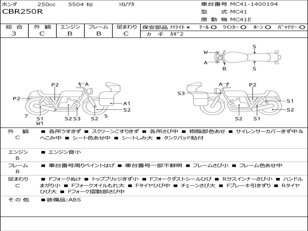 | Номер рамы / VIN | MC41-1400194 |