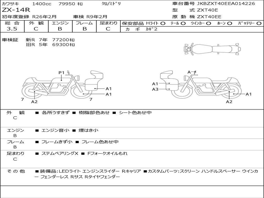 | Номер рамы / VIN | JKBZXT40EEA014226 |
