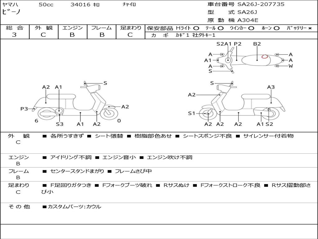 | Номер рамы / VIN | SA26J-207735 |
