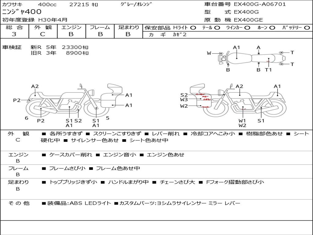 | Номер рамы / VIN | EX400G-A06701 |