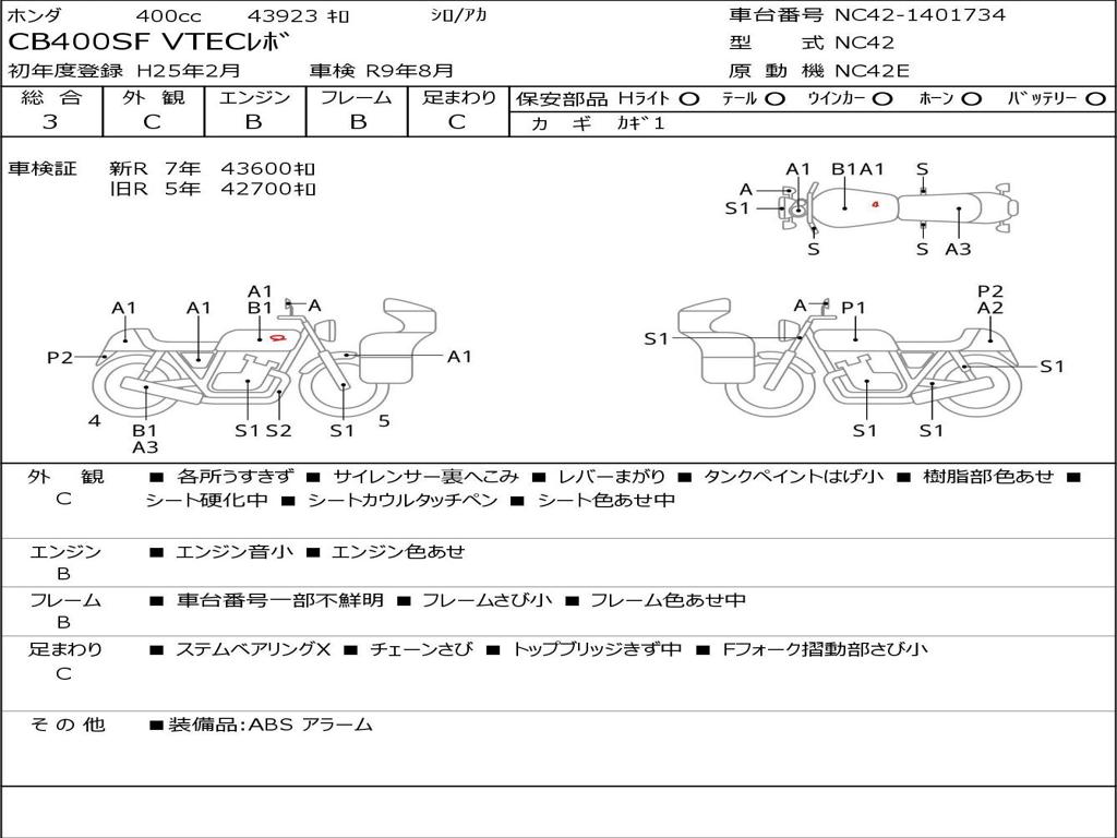 | Номер рамы / VIN | NC42-1401734 |