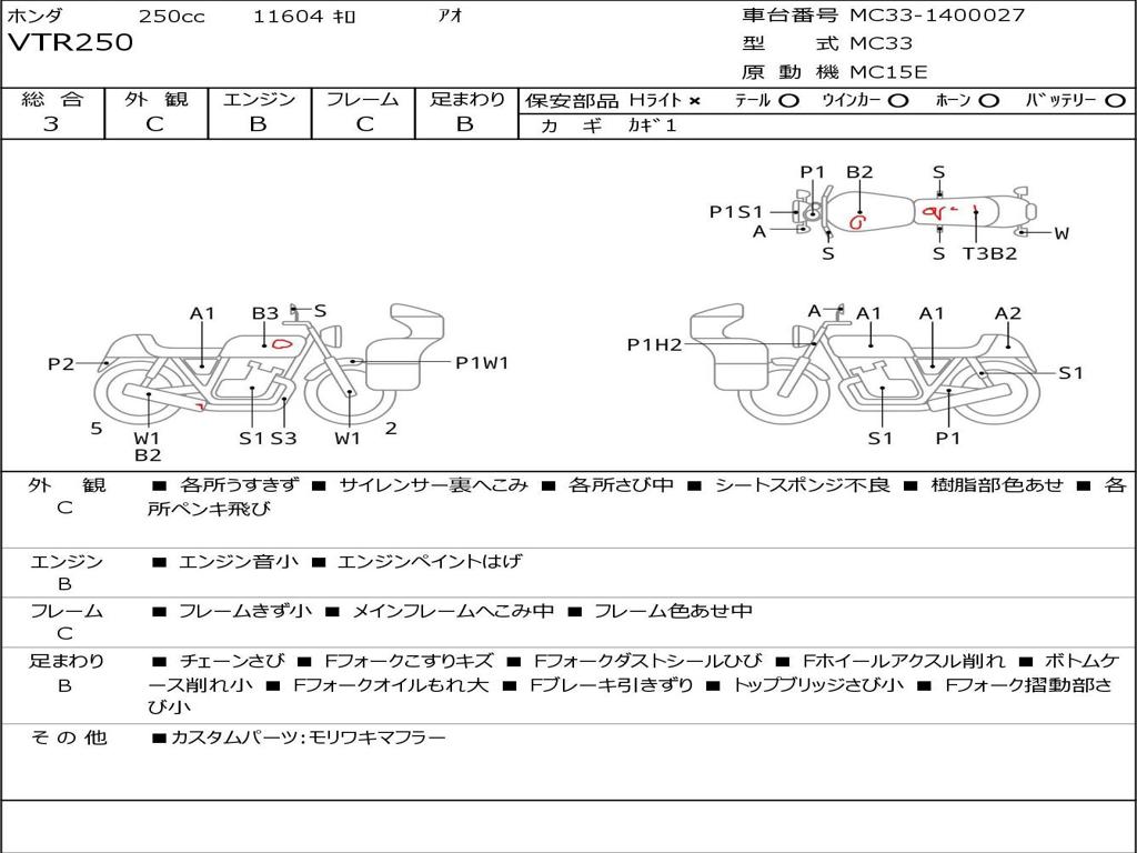 | Номер рамы / VIN | MC33-1400027 |