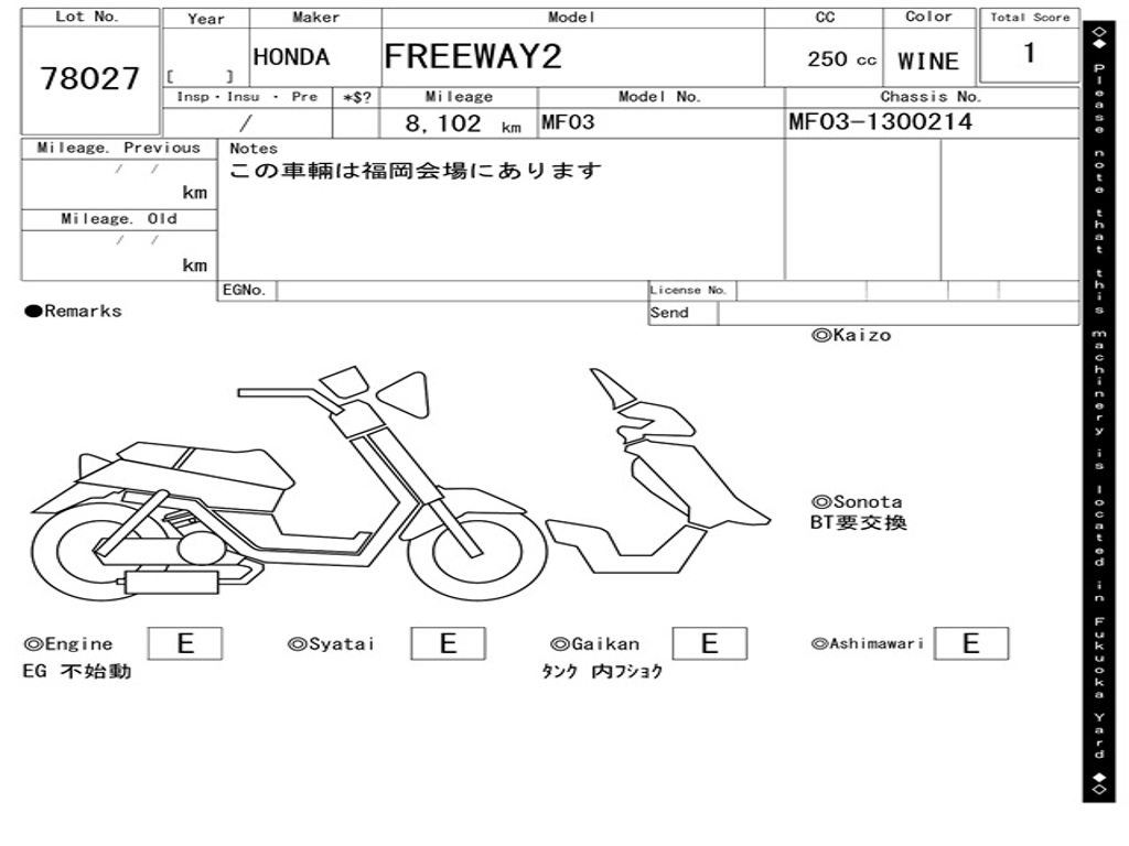 | Номер рамы / VIN | MF03-1300214 |