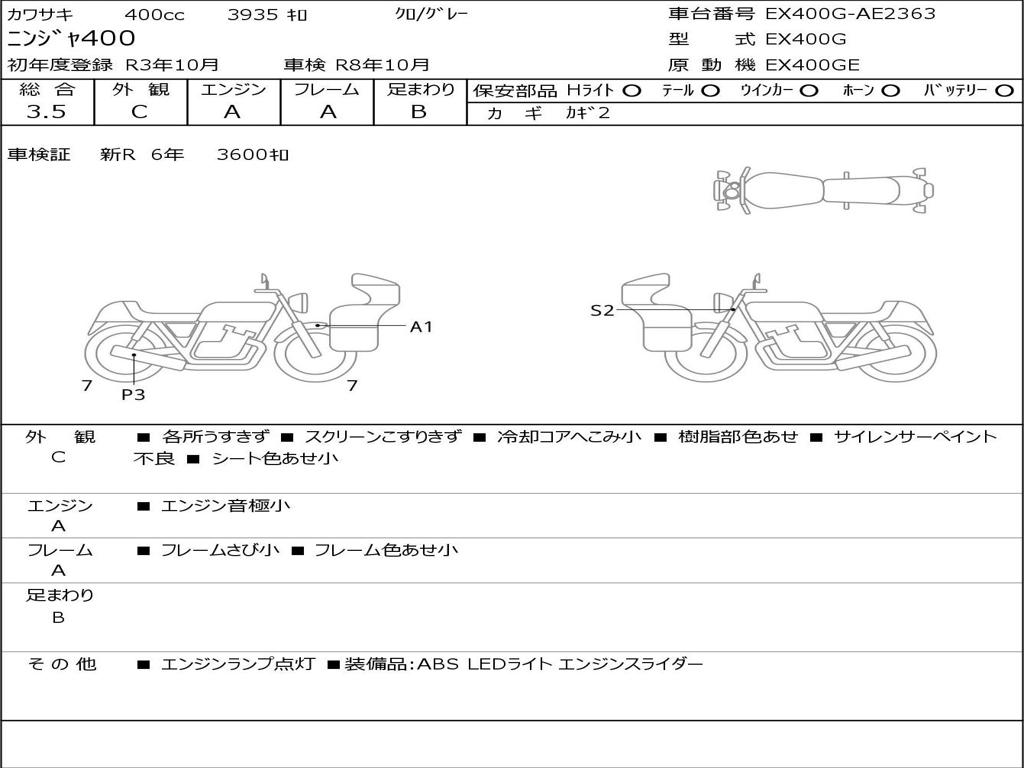 | Номер рамы / VIN | EX400G-AE2363 |