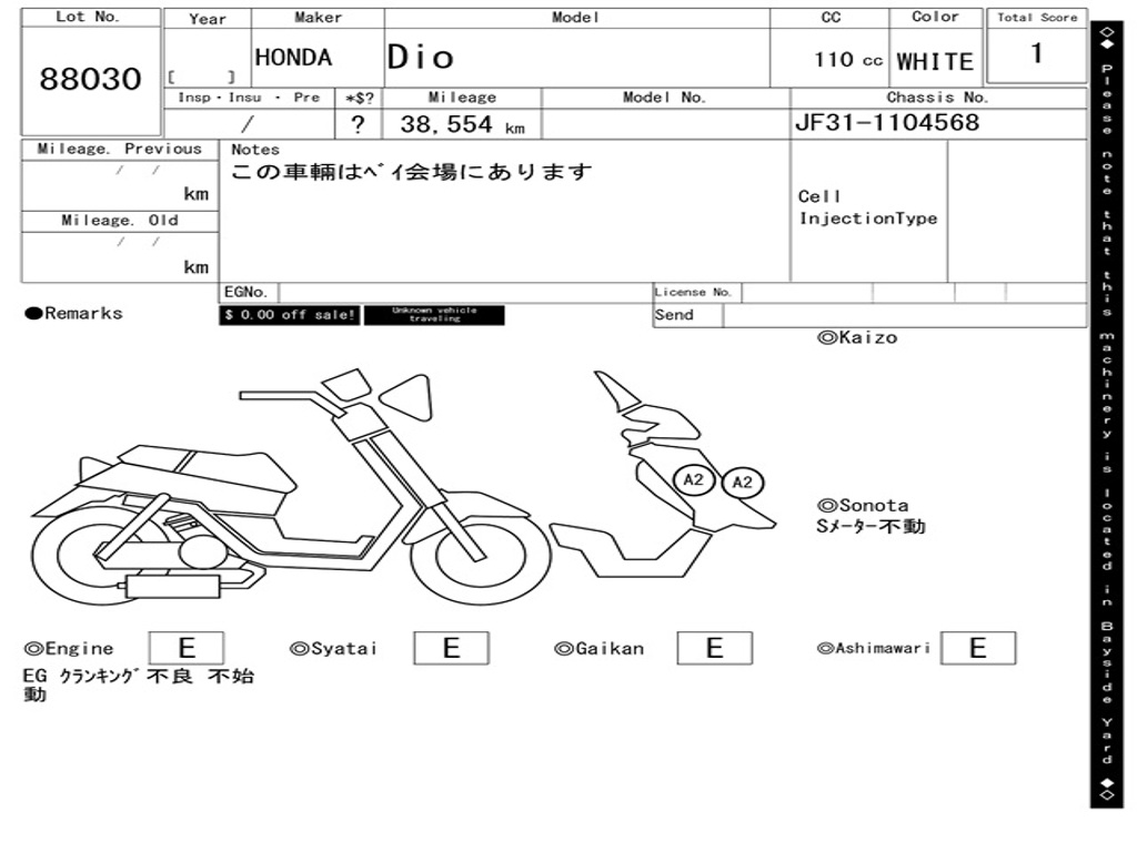| Номер рамы / VIN | JF31-1104568 |