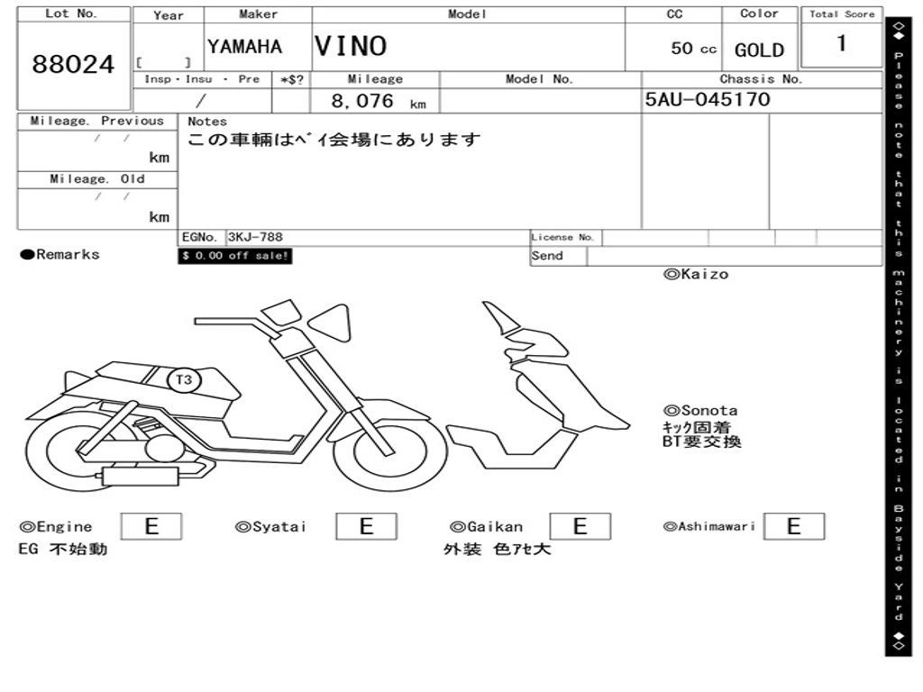 | Номер рамы / VIN | 5AU-045170 |
