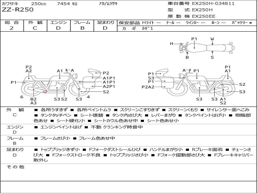 | Номер рамы / VIN | EX250H-034811 |