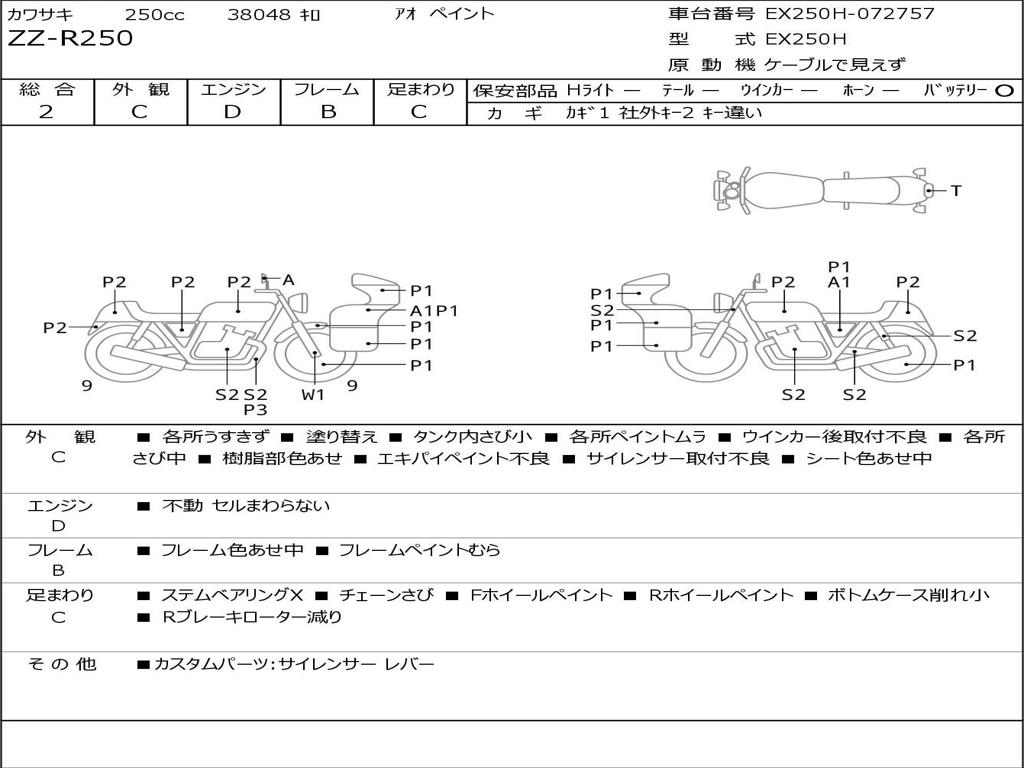| Номер рамы / VIN | EX250H-072757 |